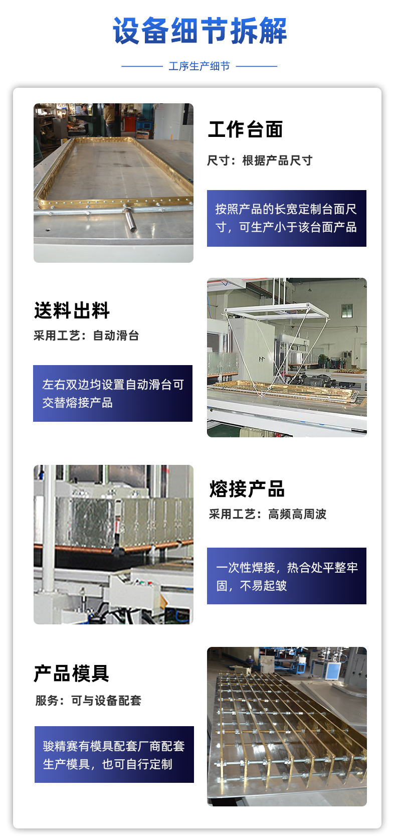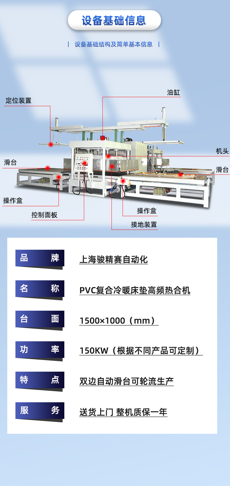 相關(guān)推薦 PE+無(wú)紡布(bù)升溫毯熱壓機 雙邊(biān)滑台珊瑚絨地墊壓花高頻熱合同步熔接機 蓬(péng)房膜材高頻焊接機 12kw膜結構高頻熔接機 左(zuǒ)右自動滑台泡殼包裝機廠家供應(yīng)高周波熱(rè)合機